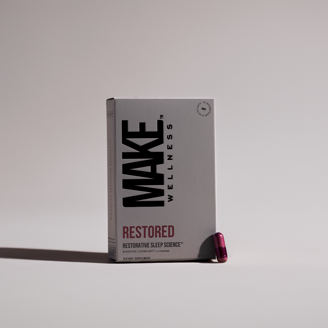 Strong sleep habits paired with RESTORED create a nighttime rhythm that supports your energy, recovery, mood, and clarity the next day.